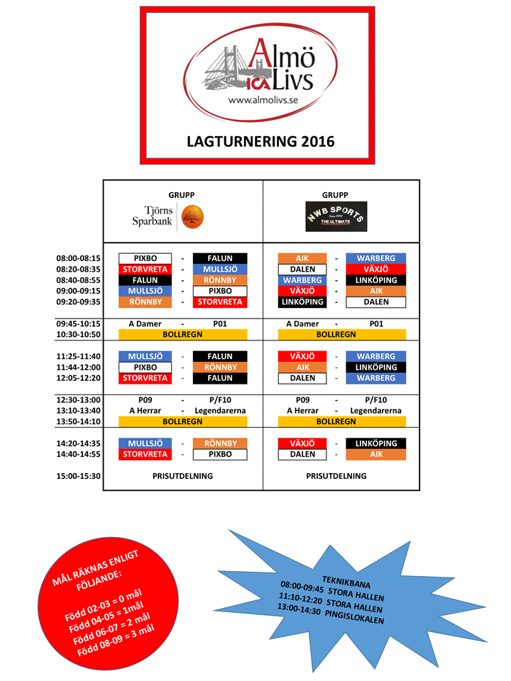 Huvudsponsor för dagen är Almö Livs Lagturneringen sponsras även av Tjörns Sparbank och NWB Sports Turnering, Lotterier, Bollregn, Tävlingar, inbjudna gäster och flera överraskningar! VÄLKOMNA PÅ EN HELDAG MED INNEBANDY! (samling för alla deltagare 07:30) Myggenäs IBK 6 apr 2016 0kommentarer