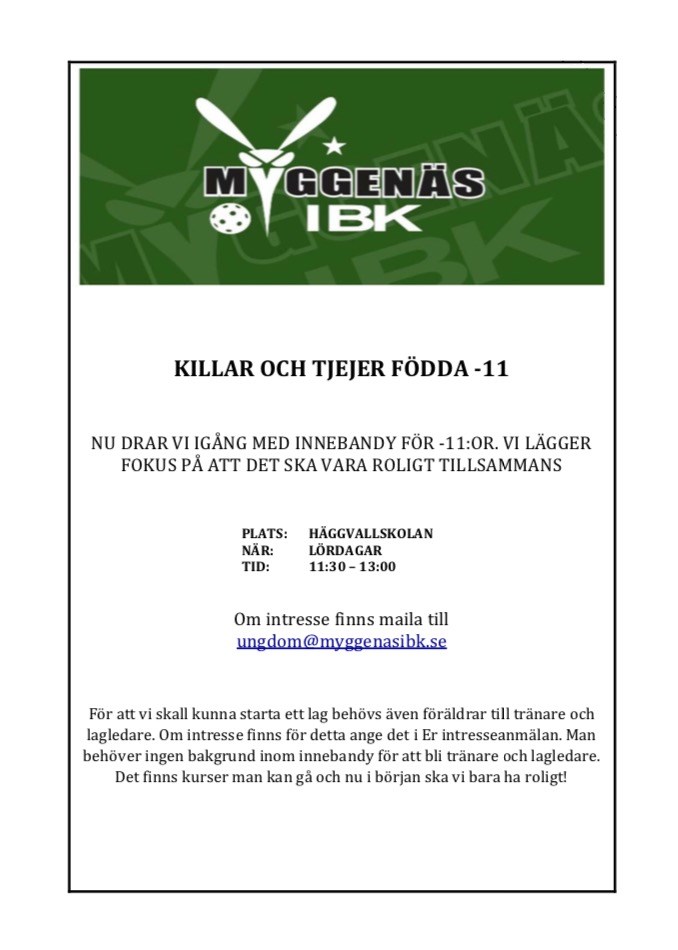 Nu drar vi igång med innebandy för -11:or! Vi lägger fokus på att det ska vara roligt tillsammans! Är du intresserad, så maila ungdom@myggenasibk.se Myggenäs IBK 23 aug 2017 0kommentarer