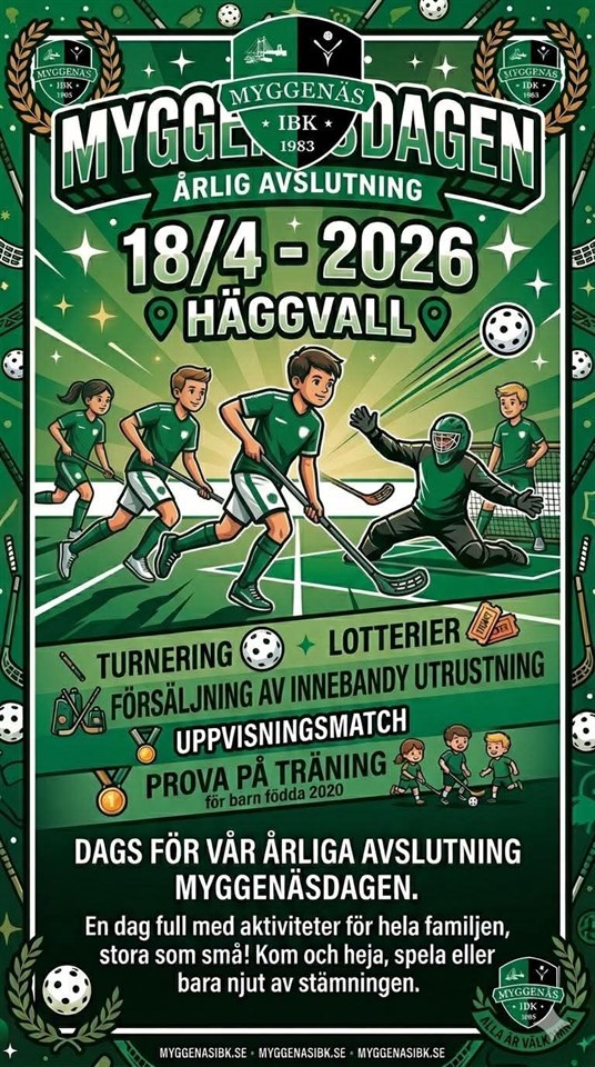 Hej! Här kommer information inför Warbergsspelen samt en viktig fråga kring samåkning. Datum: Fredag 10/4 – Söndag 12/4 Boende: Stugor på Espeviks camping (stugindelning meddelas på plats) Transport: Vi planerar att samåka i bilar mellan boende, restaurang och hallar under helgen. 🚗 Samåkning fredag Vi behöver veta vilka spelare som inte åker med i samåkningen ner på fredagen, utan istället tar sig dit i egen bil. Vänligen meddela på nr 073-8120580 om: • ert barn åker direkt med er Om vi inte hör något räknar vi med att spelaren åker med i samåkningen. Samling fredag: • Kl. 14.30 – Myggenäs korsväg (för de som samåker) • Kl. 16.00 – Espeviks camping (för de som åker direkt) Middag för spelare och ledare ingår på fredagen och planeras till kl 17.00. Matcher Fredag 10 april 19.20 – Myggenäs IBK – Malmöaug IBF 📍 Hästenskolan (Grupp D) Adress: Simhallsgatan 2, Varberg Lördag 11 april 09.20 – Hjärnarps IBK – Myggenäs IBK 📍 Vidhögehallen (Grupp D) Adress: Skolgatan 21, Veddige 13.30 – Myggenäs IBK – Vetlanda IB 📍 Varbergs Idrottshall (Grupp D) Adress: Danska vägen 5, Varberg (Eventuella slutspelsmatcher spelas på söndag beroende på resultat.) Ledare under helgen: • Jonas Johansson • Mats Engvall • Henrik Fransson Hjälpledare: • Conny Dahlström Extra chaufför under dagarna: • Axels pappa Tommy 🎒 Packlista • Matchställ (tröja, shorts, strumpor) • Inneskor • Klubba + ev. reservklubba • Glasögon • Vattenflaska • Handduk • Duschgrejer • Ombyte (kläder för hela helgen) • Lakan/sängkläder Har ni frågor eller funderingar är det bara att höra av sig! Vi ser fram emot en rolig cuphelg tillsammans 😁 /Hälsning Ledarna
