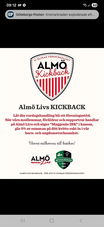 Hej alla föräldrar Myggenäs IBK har fått till ett fantastiskt samarbete med Hemköp Almö Livs. Om ni säger Myggenäs IBK när ni betalar så går 5% till klubben. Dessa pengarna kommer sedan att fördelas till lagens egna lagkassor vilket innebär att vi får in pengar som vi kan åka på cuper med eller göra anda roliga saker för. Sprid ordet till alla ni känner. Med små medel kan man göra stor skillnad💚. Mvh Tränarna Myggenäs IBK P14